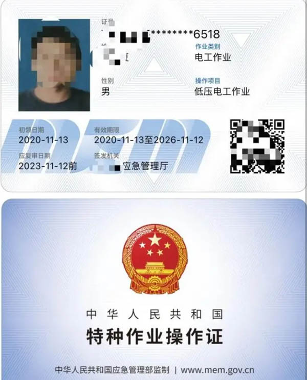 一、應(yīng)急管理廳(原安監(jiān)局)特種操作證俗稱“”上崗證”,證書每3年進(jìn)行一次復(fù)審、6年換證。常見的低壓電工和高壓電工都是由應(yīng)急管理廳頒發(fā)的。